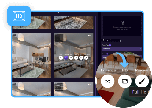 rapid generation of diverse home design variations. Upload an image, specify style and room type
